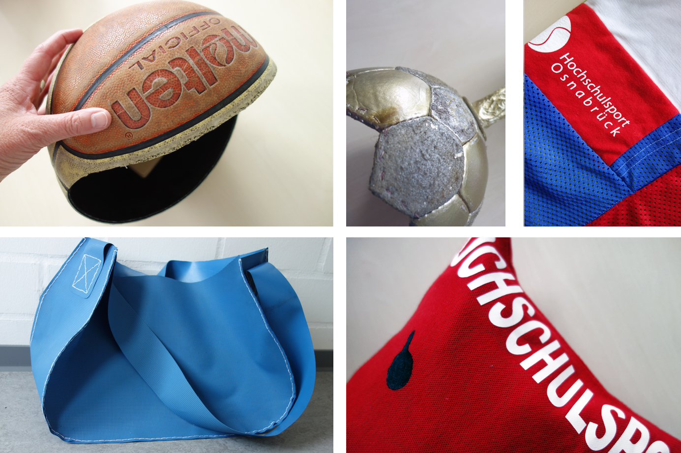 Beim Training werden regelmäßig Bälle, Matten, Trikots undBoxhandschuhe aussortiert. Um nachhaltig mit diesen Ressourcen umzugehen ist das Ziel, diese Sportmaterialien durch Upcycling einer neuen Verwendung zuzuführen. Dabei sollen Prototypen entstehen und die Chancen für eine serielle Fertigung, z. B. durch soziale Betriebe recherchiert werden. Darüber hinaus wünscht sich das Zentrum für Hochschulsport für Sportwettkämpfe Ideen für Pokale, Medaillen (z. B. mit textilen Bändern) und Abzeichen. Ein Sportprojekt zum Upcycling von Sportgeräten und zur Produktentwicklung von Prototypen.